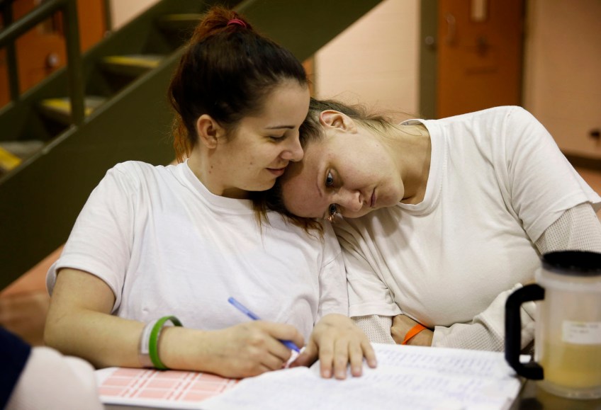nps-005-jail08 Published March 26, 2017 at 1800 × 1230 in 2016 Photos of the Year. News Picture Story… Jennie Lansberry rests her head on Kelly Dobrick’s shoulder at the Chesterfield County Jail on Oct. 19, 2016. They are part of an opioid program in the jail.