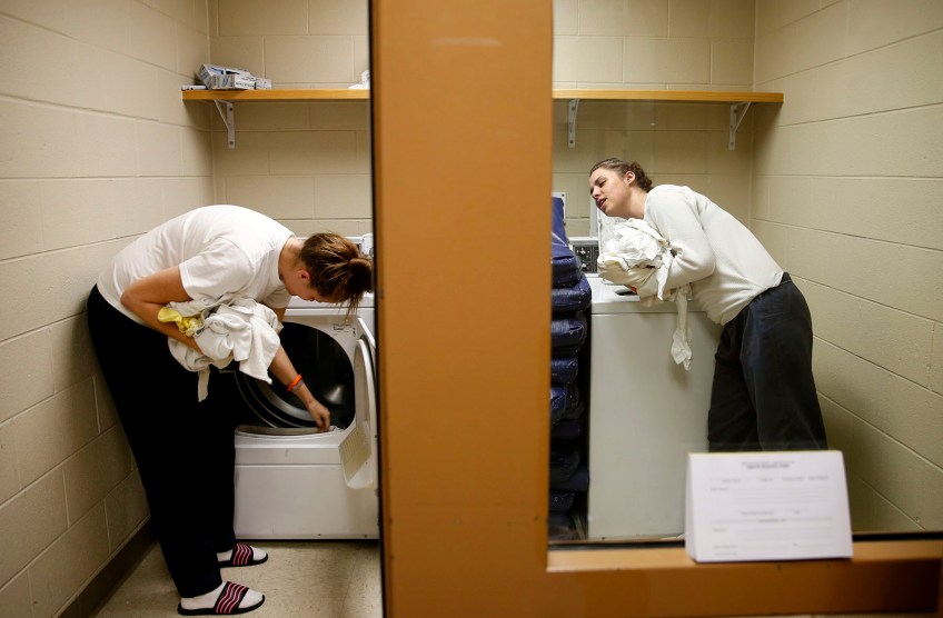 nps-005-jail10 Published March 26, 2017 at 1800 × 1181 in 2016 Photos of the Year. News Picture Story… Jennie Lansberry (left) and Alyssa Dodson change over loads of laundry at the Chesterfield County Jail on Oct. 19, 2016. They are part of an opioid program in the jail.
