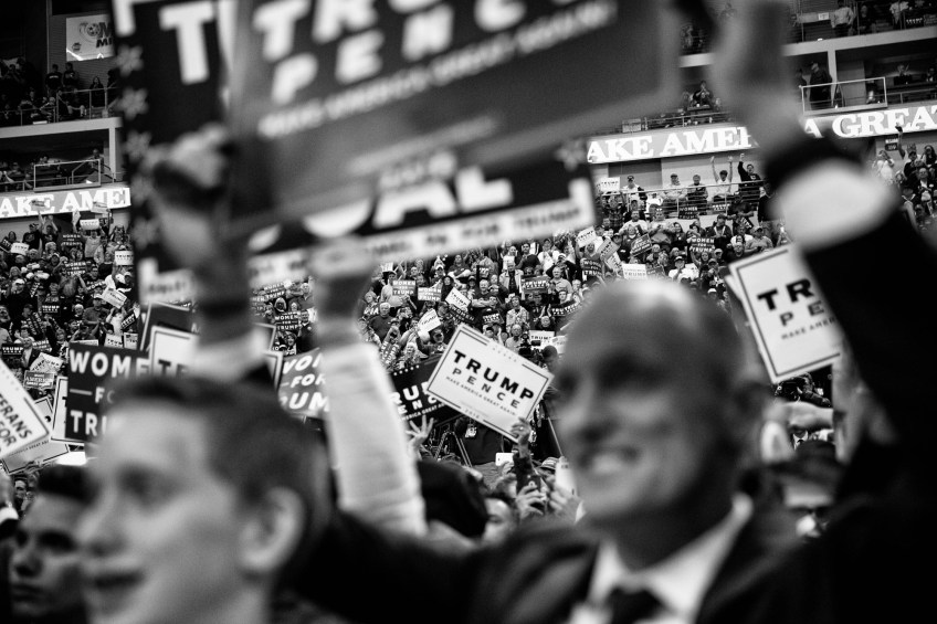 Trump: All In Published March 26, 2017 at 2000 × 1333 in 2016 Photos of the Year. News Picture Story… Supporters among a sea of signs as Donald J. Trump holds a campaign rally Friday, Nov. 4, 2016 at Giant Center in Hershey, PA.