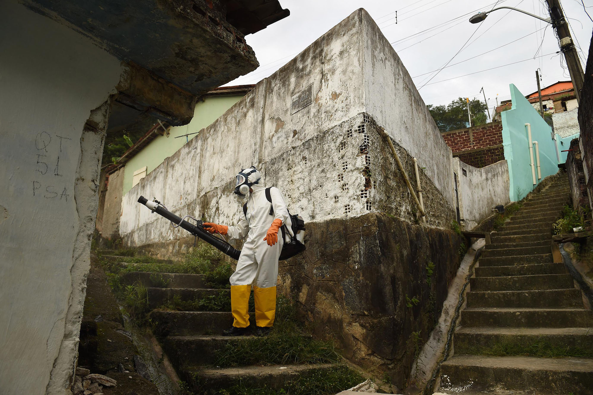A worker fumigates the Guabiraba neighborhood for mosquitos on Wednesday March 16, 2016 in Recife, Brazil. The Zika virus has been rampant in this region. The virus is spread by the Aedes aegypti mosquito. The climate of northeast Brazil and improper sanitary conditions are possible reasons why the area has been the heart of the epidemic.