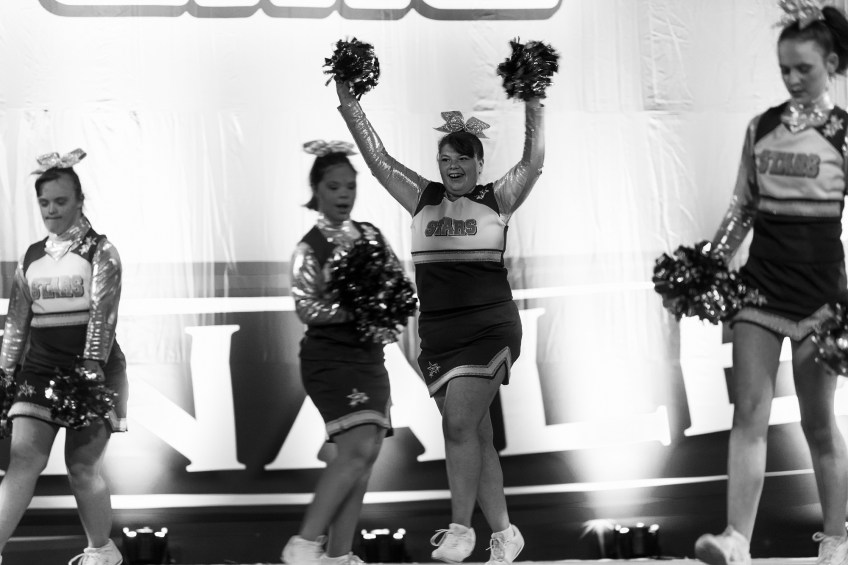 Kelsey Minnick, 19, takes the stage with the rest of the Dynamic Cheer Super Stars as they prepare to perform during the Cheer and Dance Extreme Finale on Saturday April 9, 2016 in Virginia Beach, VA. “The girls are enjoying it. … When that spotlight hits them onstage, they’re in a world of their own. They want to show off,” said Tony Torrence, Minnick’s grandfather.