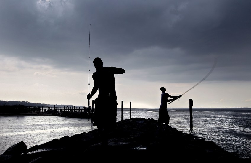 FEA-013-stormcoming03 Published March 26, 2017 at 2000 × 1305 in 2016 POY Virginia Winners. Singles Categories… HM Feature: Rob Ostermaier, Daily Press–Michael White and Isaiah Hill continue to fish near the Coleman Bridge as a series of thunderstorm cells move through the area.