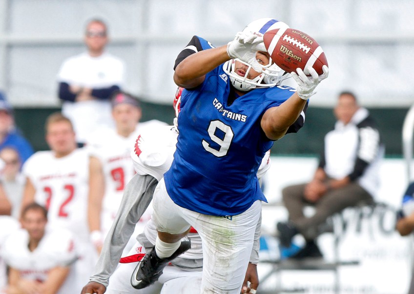 SPA-013-eyeballl03 Published March 26, 2017 at 2000 × 1424 in 2016 POY Virginia Winners. Singles Categories… HM Sports Action: Rob Ostermaier, Daily Press–Christopher Newport’s Josh Davis can’t pull in this pass under pressure from Montclair State’s Shaon Stephenson during the fourth quarter at CNU.