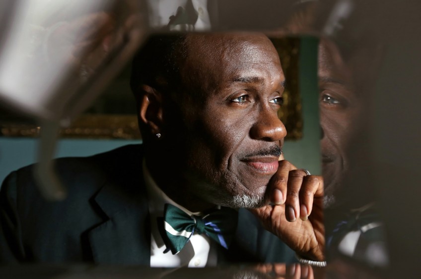 Hampton native Raymond McNeil poses for a photograph next to a sewing machine at his home mother’s home in Hampton. Currently living in L.A., McNeil is a fashion designer who designed multiple dresses for Margot Lee Shetterly, the author of “Hidden Figures, ” as she travels on the press tour for the movie. Thursday, Dec. 22, 2016.
