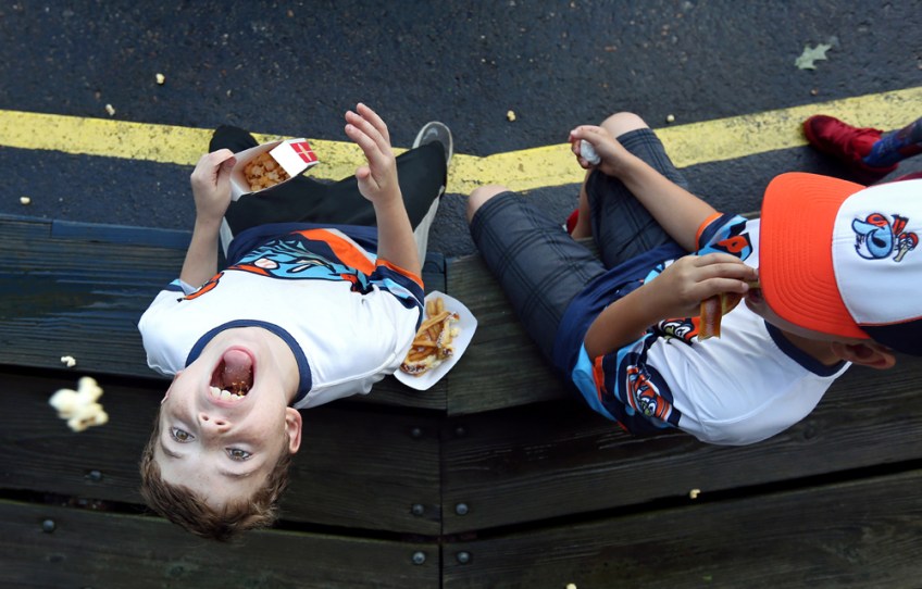 Feature 2nd place, Aileen Devlin, Daily Press Published September 8, 2017 at 1000 × 640 in 2nd Q. CLIP CONTEST WINNERS 2017 Zackary Reynolds, 9, left, attempts to catch a piece of popcorn in his mouth after the Peninsula Pilots season opener was cancelled due to a severe thunderstorm on Wednesday, May 31, 2017.