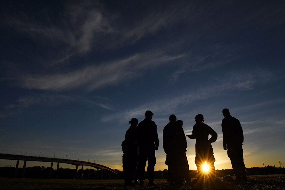 The sun rises as Naval Academy plebes take part in the annual Sea Trials at the United States Naval Academy on Tuesday May 16, 2017 in Annapolis, MD.