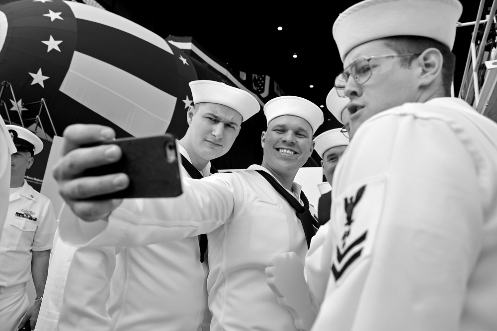 Multiple 3rd place, Jonathan Gruenke, The Daily Press 3 Published September 8, 2017 at 1000 × 667 in 2nd Q. CLIP CONTEST WINNERS 2017 Crew members of the submarine USS Indiana take selfies before the start the christening of the Virginia-class submarine Indiana at Newport News Shipbuilding Saturday morning April 29, 2017.