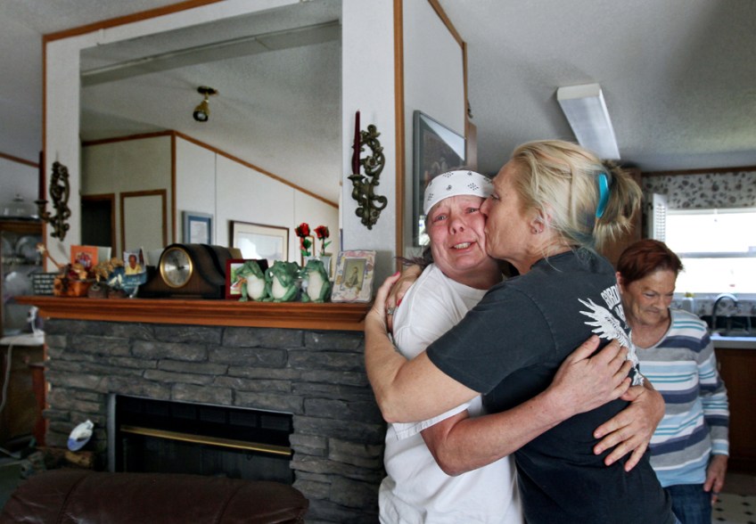 Arriving from Smithfield, Va., family friend and long-time supporter Lisa Fry, left, shares a hug with Pamela Scott, right, at Scott’s mother’s home in the Outer Banks of North Carolina. In early 1987 at the age of 23, addicted and selling cocaine, Scott was convicted of first degree murder and robbery in Hampton, Va. While incarcerated she received her GED, became licensed for cosmetology and is now living as a hair dresser in North Carolina. Scott falls under Virginia’s old parole laws, in which a five-member state board determines whether to release inmates. Tuesday, March 21, 2017