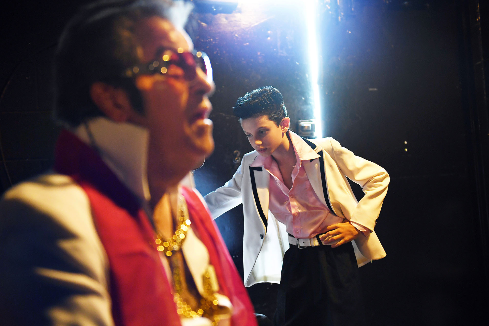 Elvis Tribute Artists, Jim Cardwall, 71, of Jeffersonville, IN, left, and Nathan Pittorf, 11, of Buffalo, NY wait backstage before performing during the Images of the King World Championship at the New Daisy Theatre on Saturday August 12, 2017 in Memphis, TN. August 11-19 is Elvis Week. This year marks the 40th year since Elvis Presley’s death.