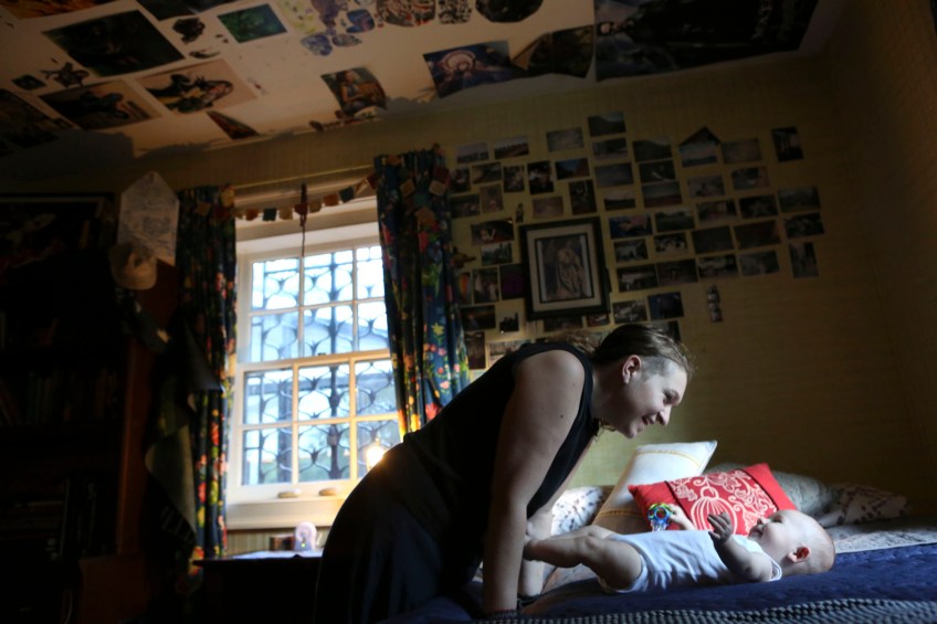 Maddie Ross, 28, plays with her son, Dexter, at her motherÕs home in her old room in South Roanoke after seven months in Bethany Hall – a residential substance abuse treatment program. Artwork, magazine clippings and photos of friends from high school hang on the walls. Ross was homeless, suicidal and thought she would die by age 27 from her alcohol and opiates addiction. The Roanoke Times followed Ross and another woman, Kyla Donoho, as they worked their way through the substance abuse treatment program. “I think it really took Dexter coming into my life to see the world in a better perspective,” said Ross, who had been through multiple treatment programs and attributes her success to Bethany Hall, “In other programs you donÕt get the education you need or the time to fix your thinking.”