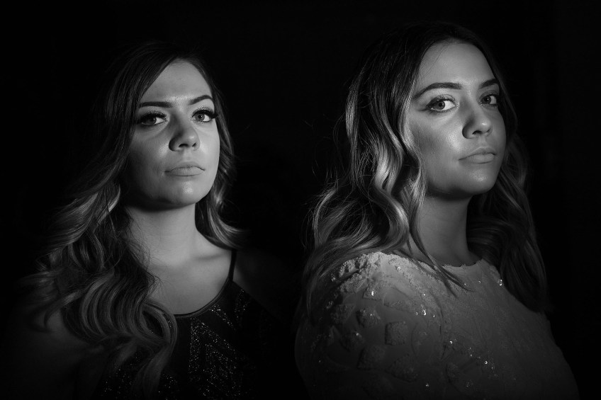 Twin sisters, Gianna Baca, left, and Natalia Baca pose for a portrait at their family home on Saturday October 07, 2017 in Las Vegas, NV. Gianna was wounded in the leg, while Natalia was shot in the torso while attending the Route 91 Harvest Festival.