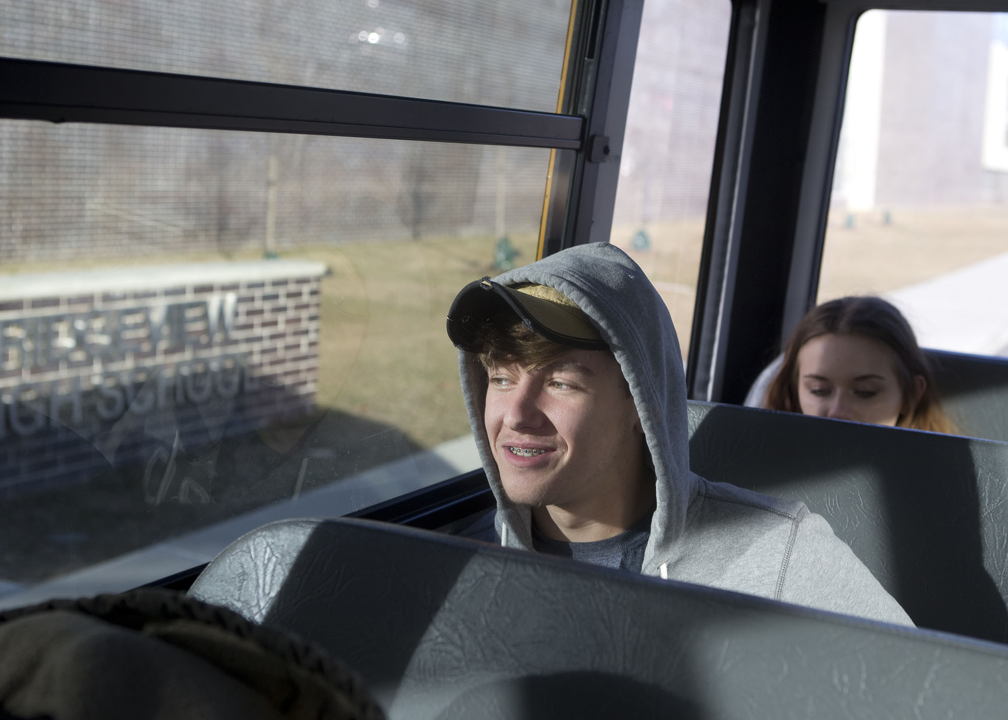 James Rasnick, a tenth grader at Ridgeview High School in Dickenson County, takes the bus home on Thursday, Dec. 15, 2016. Rasnick attended the former Clintwood High School before it was consolidated. Haysi, Clintwood and Ervinton High School were combine to make the new school.