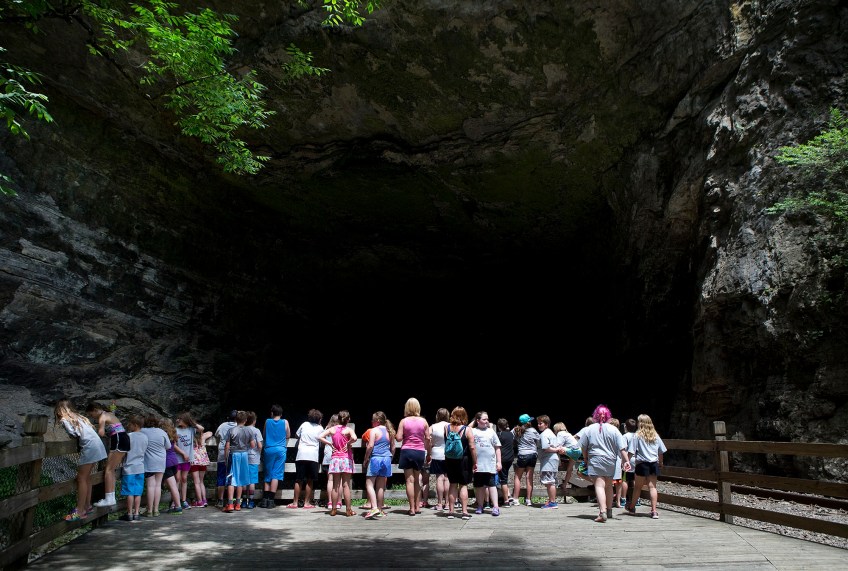 nps-006-coalfieldschools06 Published March 18, 2018 at 2000 × 1349 in 2017 POY-VA News Picture Story Students and teachers from Appalachia Elementary School look into the cavernous tunnel at Natural Tunnel State Park during a school field trip on Wednesday, May 17, 2017. The trip was organized to celebrate the end of the school year.
