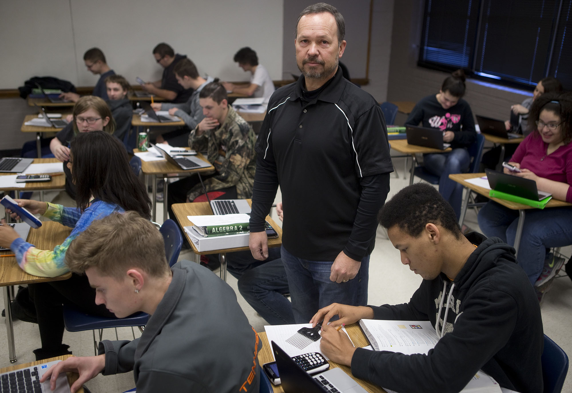 nps-006-coalfieldschools09 Published March 18, 2018 at 2000 × 1376 in 2017 POY-VA News Picture Story Robert Fultz teaches algebra and geometry at John I. Burton High School. Fultz also serves on city council and is an announcer at the school ball games.