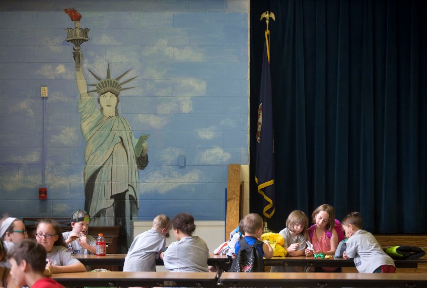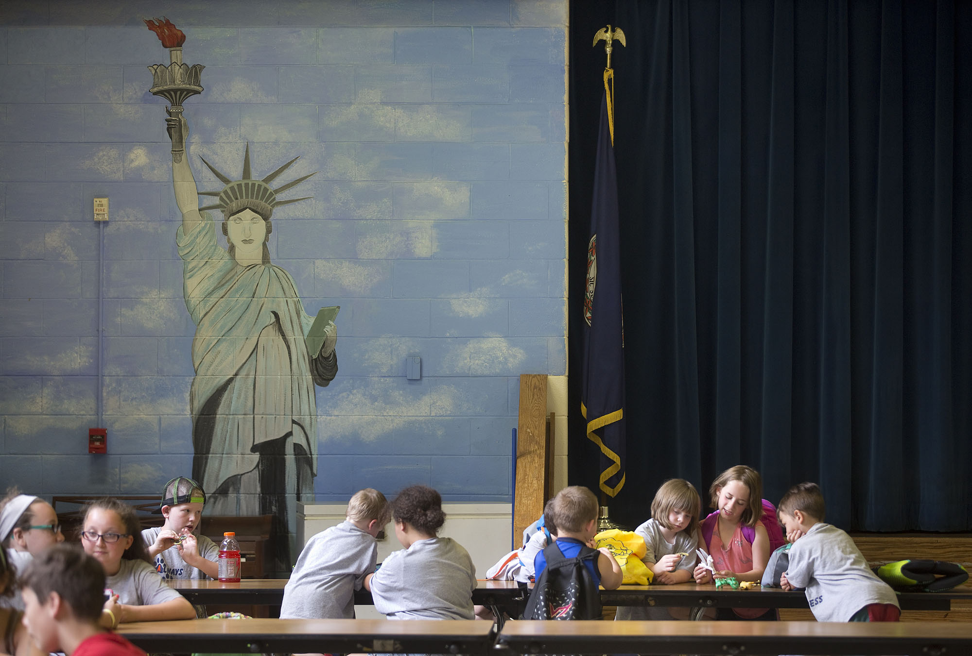 nps-006-coalfieldschools11 Published March 18, 2018 at 2000 × 1351 in 2017 POY-VA News Picture Story Students at Appalachia Elementary School wait in the cafeteria for their school bus to take them home at the end of the day on Wednesday, May 17, 2017.