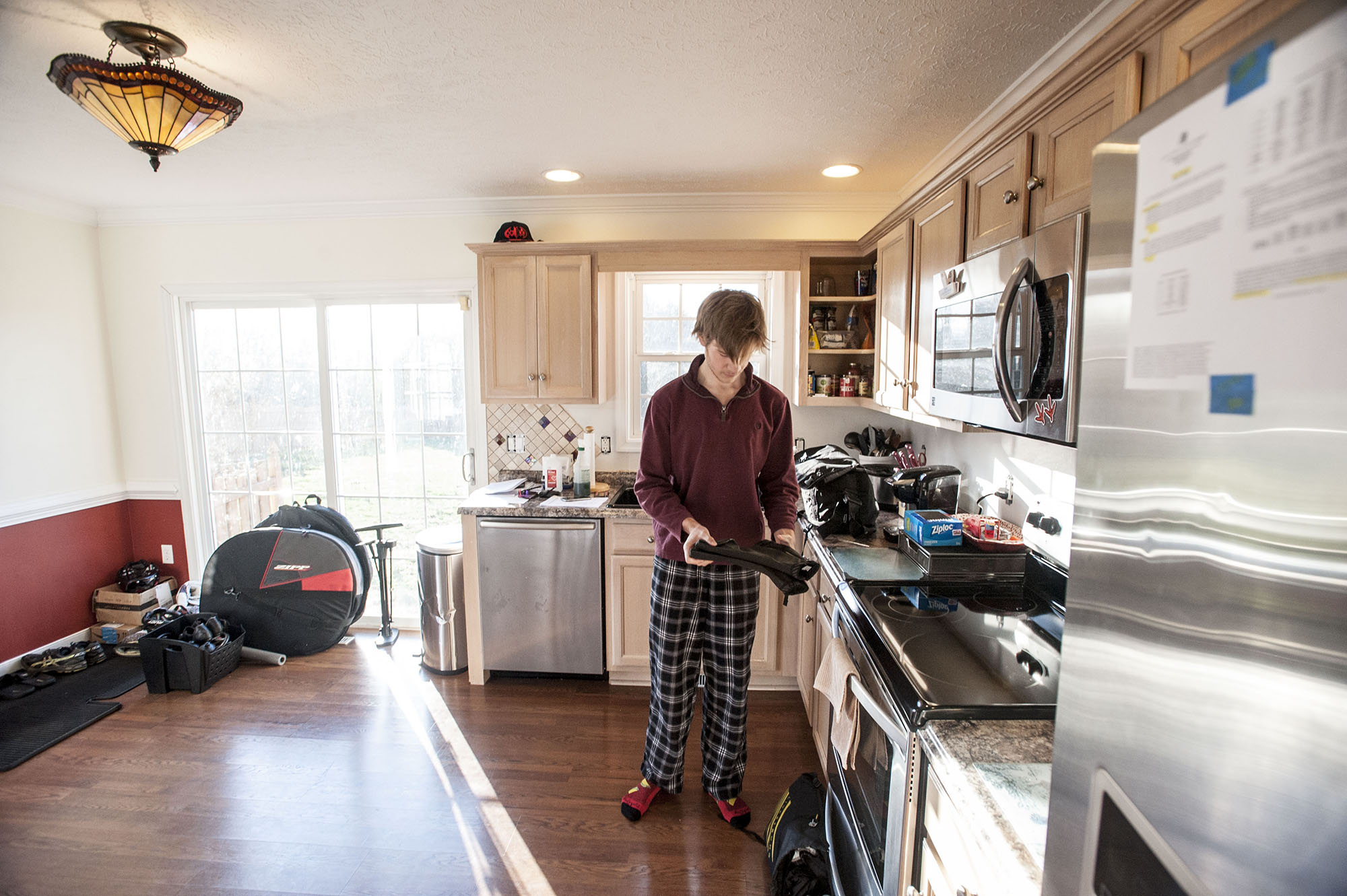 sps-018-theclimb05 Published March 18, 2018 at 2000 × 1331 in 2017 POY-VA Sports Picture Story BEDFORD, VA – MAR 3: Ben packs up for the trip to Woodstock, Georgia for the Tour of the Southern Highlands, a stage race that is designated as a USA Cycling Selection Race, on Friday, Mar. 3. 22, 2017 in Lynchburg, Va.