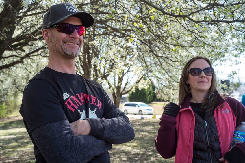 sps-018-theclimb07 Published March 18, 2018 at 2000 × 1333 in 2017 POY-VA Sports Picture Story WOODSTOCK, VA – MAR 4: Marcus and his ex-wife, Sara Kavanaugh, smile as Ben steps on the podium after finishing 3rd in the opening stage time trial at the Tour of the Southern Highlands stage race on Saturday, Mar. 4, 2017 in Woodstock, Ga.