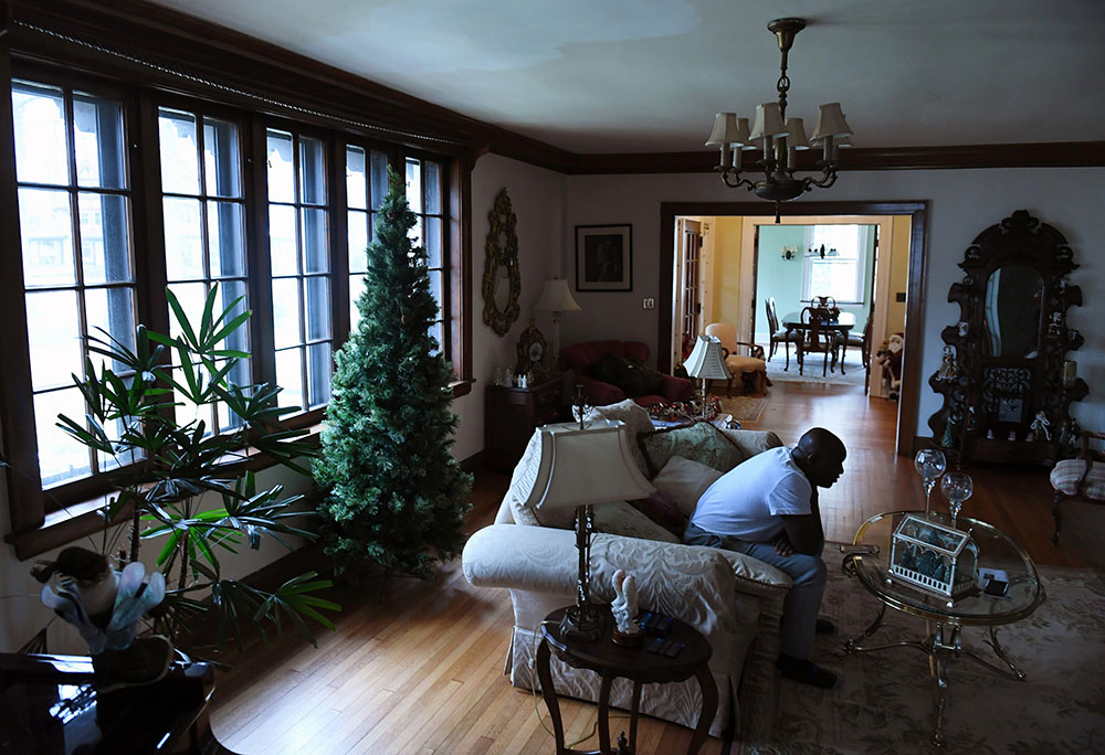 Ansly Damus talks on a phone with his family as he lives at the home of Gary Benjamin and his wife, Melody Hart on Saturday December 01, 2018 in Cleveland Heights, OH. Damus, who is from Haiti has been detained since 2016 after coming to the United States to seek asylum. Ansly was released on Friday to live with Benjamin and Hart.