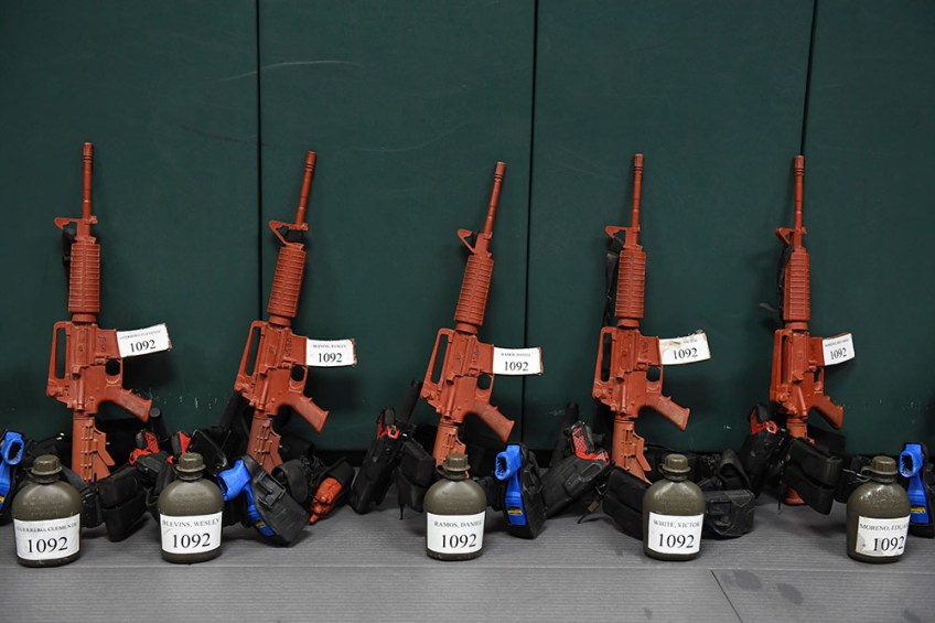 Replica firearms are seen lined up as trainees take part in an edge weapons training class at the United States Border Patrol Academy on Thursday August 30, 2018 in Artesia, NM. The academy is on the grounds of the Federal Law Enforcement Training Center.