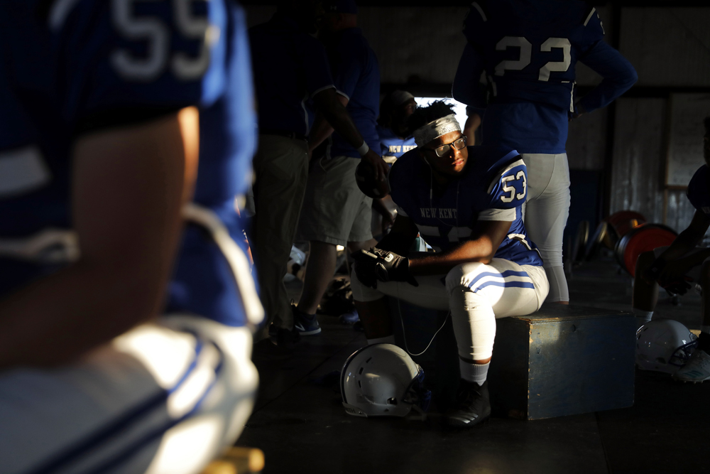 2nd Place Portrait: Jonathon Gruenke, Daily Press—Juan Mikel-Jones sits inside the weight room of New Kent before the start of Friday’s football game against Poquoson September 21, 2018. In January, Juan underwent heart transplant surgery after being diagnosed with cardiomyopathy in October.