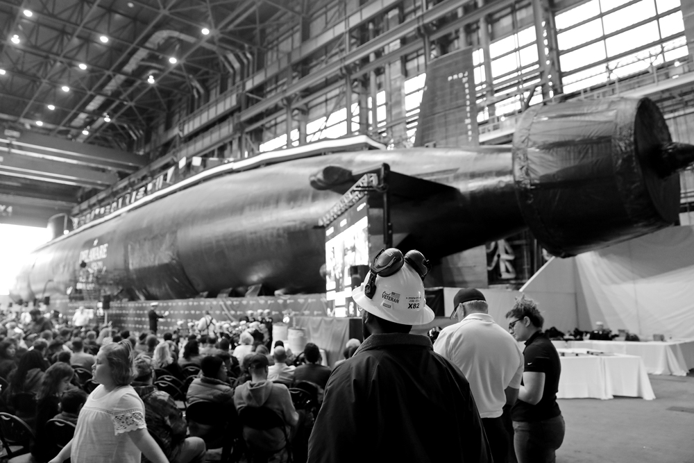 1st Place Multiple: Jonathon Gruenke, Daily Press—Newport News Shipbuilding workers and distinguished guests find their seats before the start of the christening ceremony for the submarine Delaware at Newport News Shipbuilding Saturday morning October 20, 2018. Delaware will be the ninth Virginia-class submarine that Newport News has delivered — 18th in the entire class.