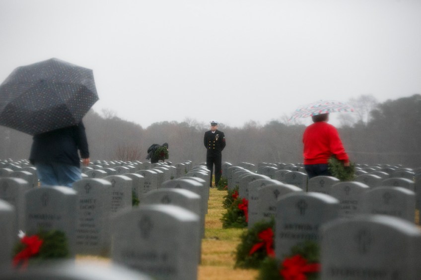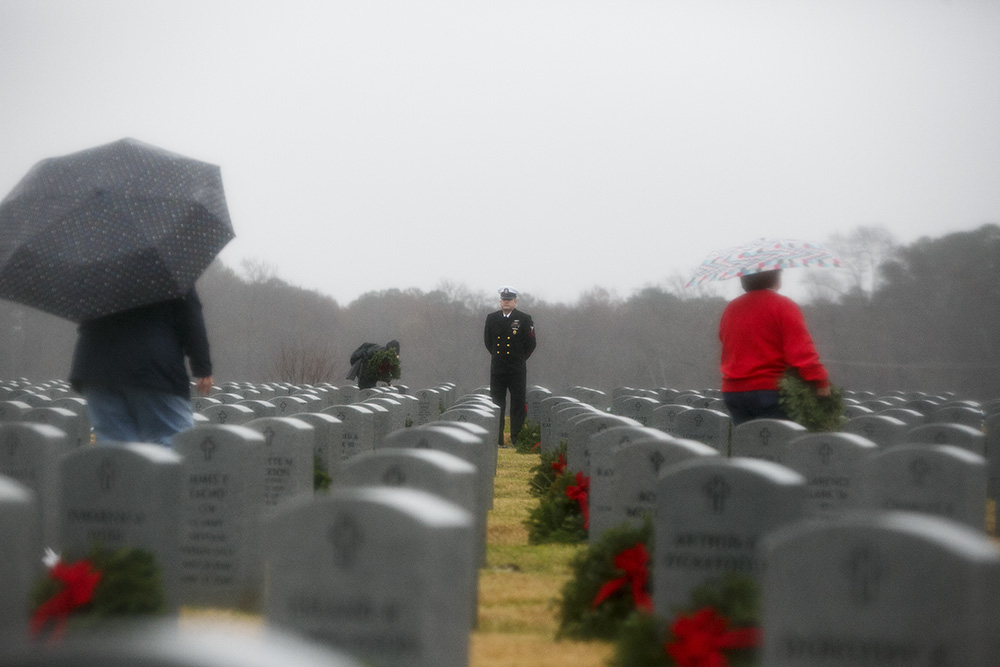 3rd Place Feature: Kristen Zeis, Virginian-Pilot— Chief Petty Officer Franklin Cheromiah watches over as volunteers and loved ones place over 9,000 live wreaths at grave sites as part of the Horton Wreath Society wreath laying event at Albert G. Horton Jr. Memorial Veterans Cemetery in Suffolk, Va., on Saturday, December 15, 2018. This was the 11th year the society put on the event.