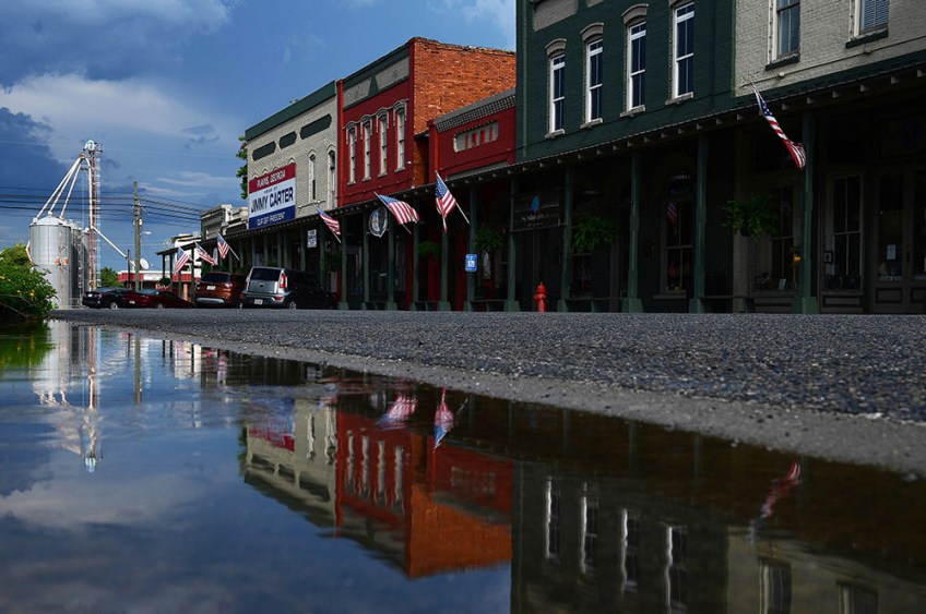Carter Published January 4, 2019 at 1000 × 664 in Carter Buildings on Main Street are reflected in a rain puddle on Monday August 06, 2018 in Plains, GA. Born in Plains, GA, President Jimmy Carter stayed in the town following his presidency.