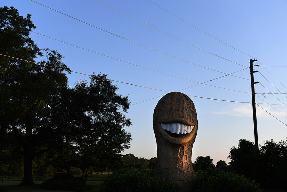 An oversized peanut which was made in Indiana as a tribute to Jimmy Carter sits outside the convenience store, Plains Mtd on Monday August 06, 2018 in Plains, GA. Born in Plains, GA, President Jimmy Carter stayed in the town following his presidency.
