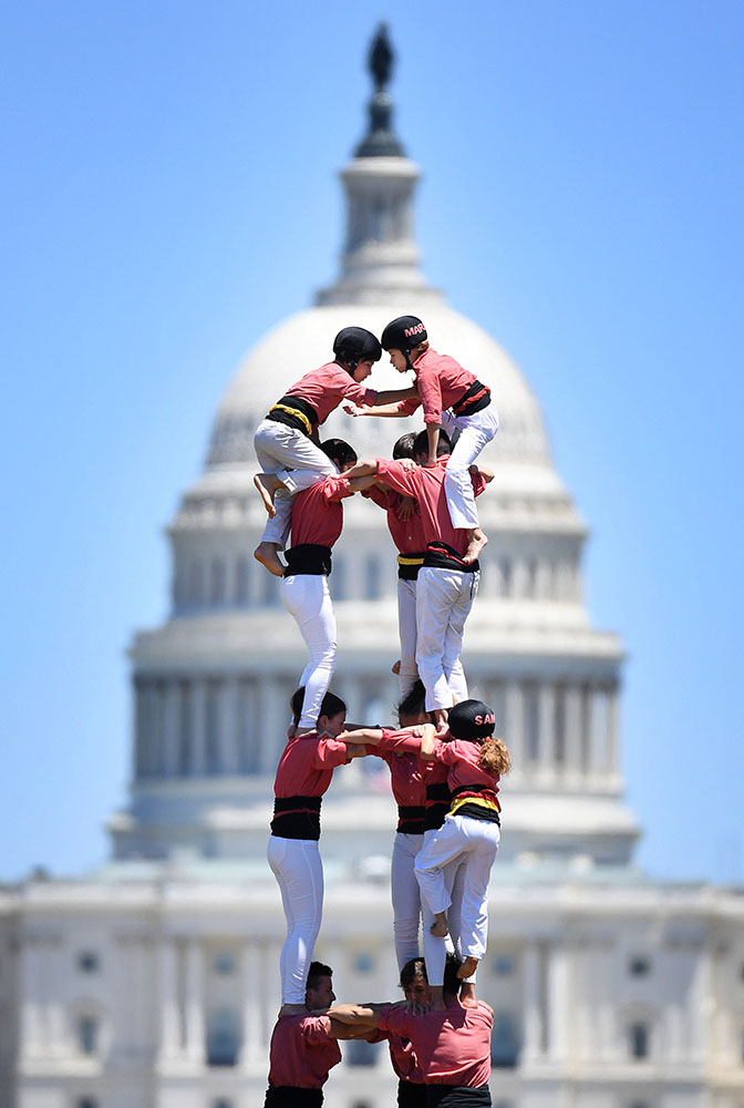 1st PLACE FEATURE: MATT MCCLAIN, WASHINGTON POST–The United States Capitol is seen in the background as Smithsonian Folklife Festival participants form a human tower along the National Mall on Sunday July 08, 2018 in Washington, DC. The cultures of Catalonia and Armenia were highlighted in this year’s festival. The human tower tradition is celebrated in Catalonia.