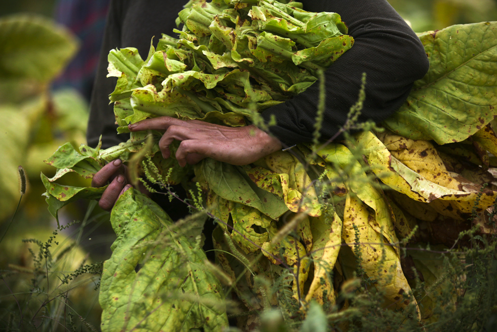 Tobacco Published April 2, 2015 at 1000 × 667 in Tobacco A tobacco picker for the Mitchell twins holds a handful of tobacco on Friday, Sept. 12, 2014.