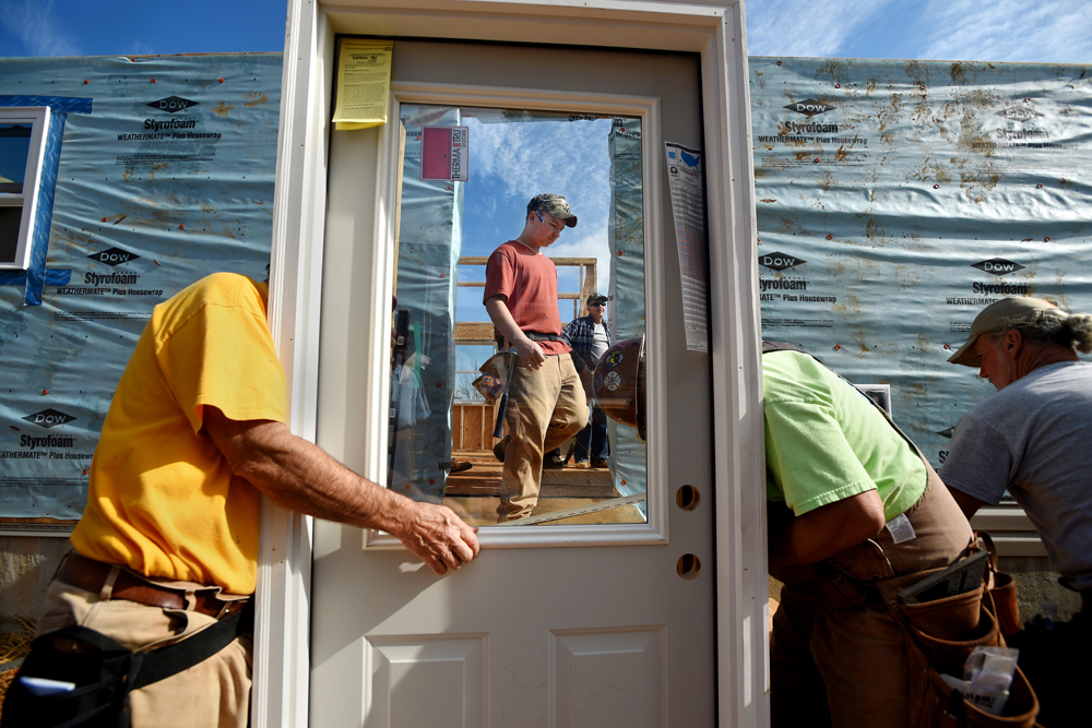 1st Place Feature: Max Oden Published April 2, 2015 at 1000 × 667 in 1st Place Feature: Max Oden Habitat for Humanity volunteer Jonathan Browning, center, of Amherst, is seen through the window of a door being installed in one of two homes volunteers worked to construct Saturday during a Habitat for Humanity ‘Blitz Build’ in Altavista, Va.