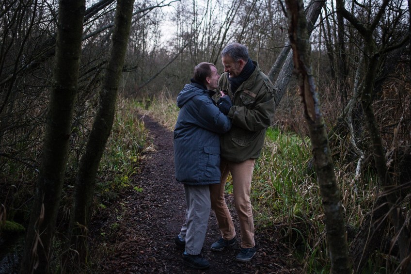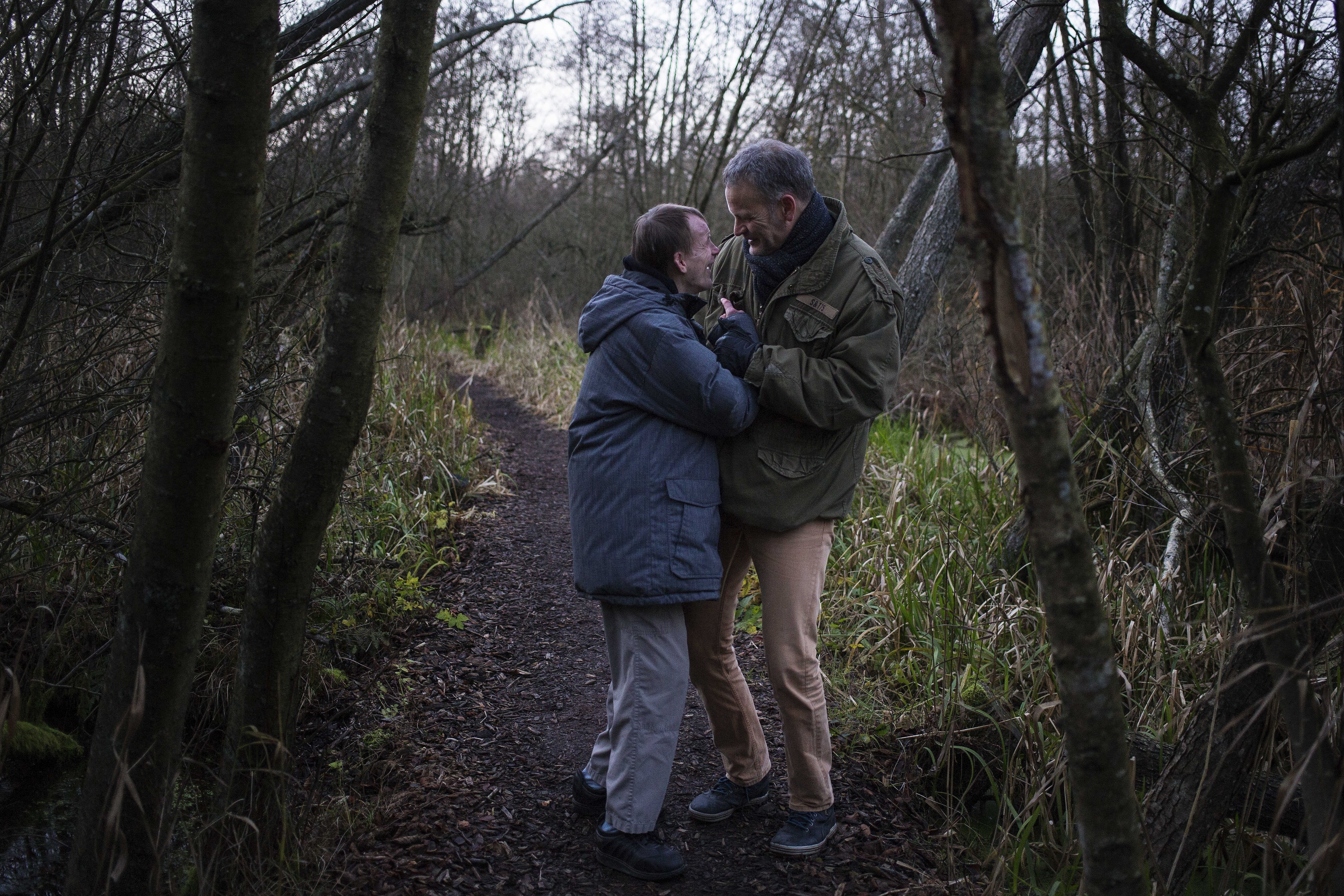 Kenth and Niels share a laugh during a walk around the grounds of Solund. Niels and Kenth have developed a close relationship over their time together and from Kenth’s reliance on his caretakers for simple tasks.