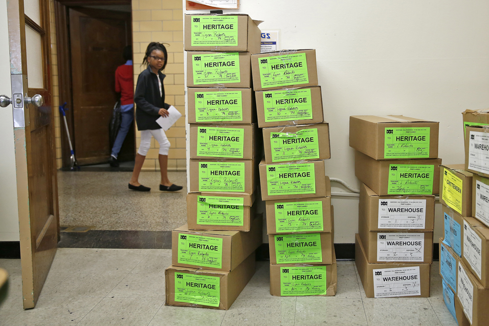 Huntington Middle School last day of school Published January 4, 2019 at 1000 × 667 in Huntington Middle School last day of school A Huntington Middle School student passes by stacked boxes to be moved to other locations during the last day of school Thursday afternoon June 14, 2018.
