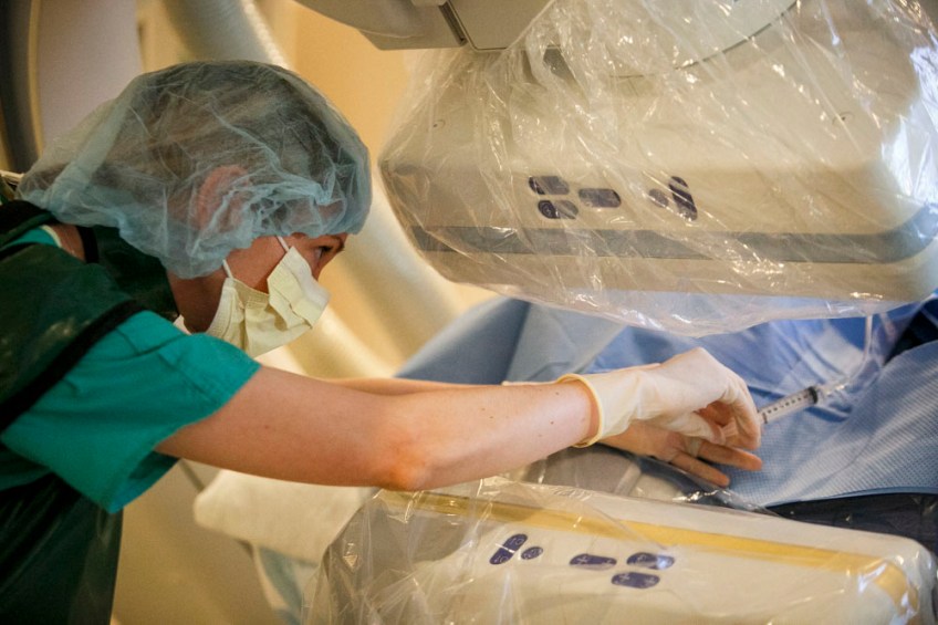 Using special imaging technology, Dr. Crystal Proud, a pediatric neurologist at ChildrenÕs Hospital of The KingÕs Daughters in Norfolk, Va., guides an injection of Sprinraza into the spine of Jackson Saville at Norfolk General in Norfolk, Va., on Friday, May 5, 2017. A single injection of the drug, needed six times the first year and three times a year after that, costs $125,000 for the drug alone.