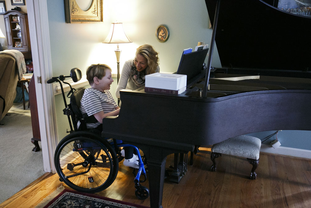 8-year-old Jackson Saville and his mom Stacy in their home in Virginia Beach, Va., on Tuesday, January 31, 2017. Jackson lives with Spinal Muscular Atrophy, a rare genetic condition that his sister, Morgan, died of when she was 3 years old in 2005. The FDA recently approved the first drug called Spinraza to treat it, and Jackson started receiving the medicine in March 2017.