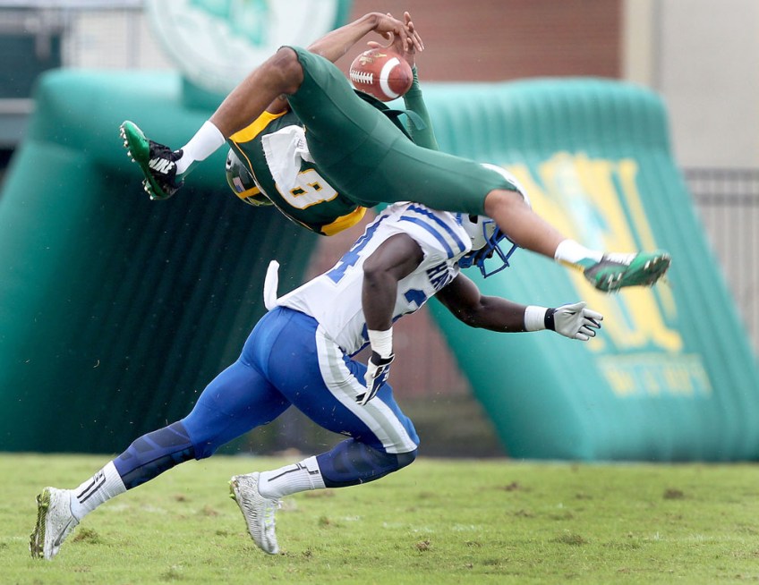 Sports 1st Place: Rob Ostermaier/Daily Press Published December 8, 2015 at 1000 × 772 in Sports 1st Place: Rob Ostermaier/Daily Press Norfolk’s DeAndre Sangster manages to catch this first quarter pass as he is hit by Hampton’s Chaka Diarrassouba during the first quarter Saturday September 26, 2015 in Norfolk.