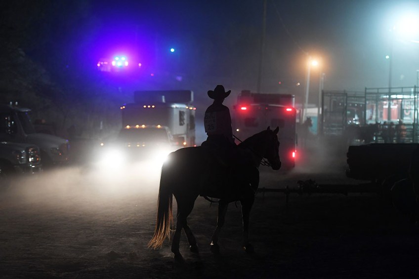 PioneerInSight Published January 4, 2019 at 1000 × 667 in PioneerInSight Dona Kay Rule sits on horseback during an evening rodeo that was part of Pioneer Days on Friday May 04, 2018 in Guymon, OK. This was the 86th year of the event.