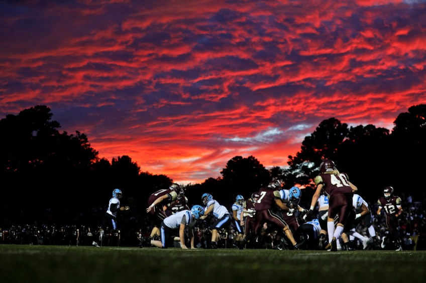 Poquoson VS Warhill Published January 4, 2019 at 1000 × 667 in Poquoson VS Warhill 2nd PLACE SPORTS: JONATHON GRUENKE, DAILY PRESS–Poquoson and Warhill battle as the sun sets during Friday’s game at Poquoson Middle School September 28, 2018.
