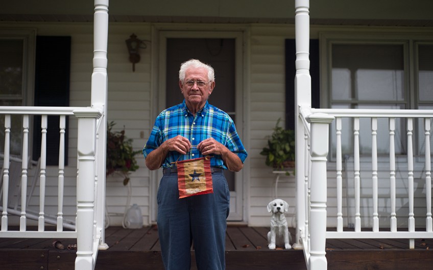 3rd Place Portrait: Jill Nance Published April 2, 2015 at 1000 × 626 in 3rd Place Portrait: Jill Nance World War II veteran Marvin Peele Jr. holds the banner his mom hung in the window throughout the war to show her support for her son serving overseas. He served as a corporal with the 534th Amphibious Tractor Battalion.