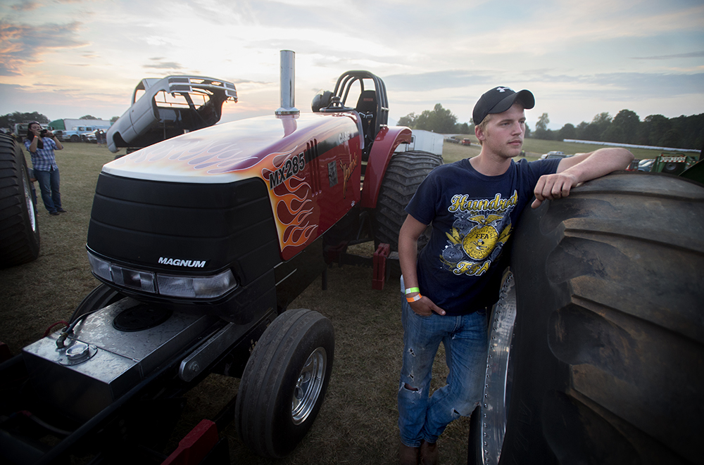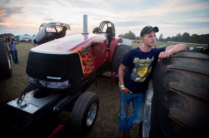 Darren Crihfield waits with his friend who is competing in the 7800 Light Pro Stock class at the 9th Annual Truck & Tractor Pull on August 29, 2015. Those participating in the pull come from all over the East Cost. “most of the guys that pull are related to farming or constructions where they use tractors and tucks,” said organizer Ed Sims.