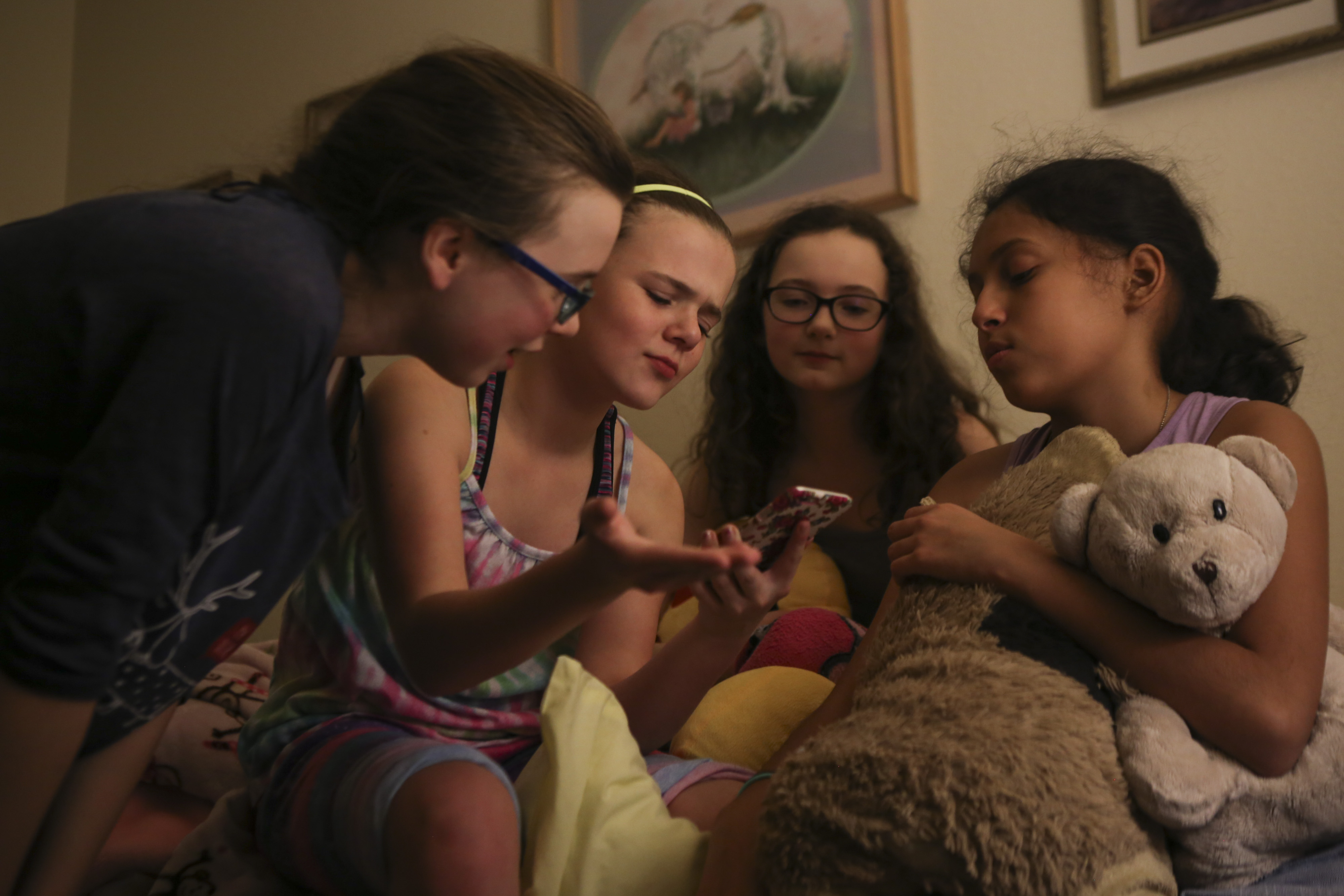 Ratner_Story_Live Like Lola_03 Published May 2, 2017 at 4000 × 2667 in Ratner_Story_Live Like Lola_03 Lola and her friends play with Siri on her phone on November 4, 2016. Lola attempts to maintain normalcy by hosting a slumber party.