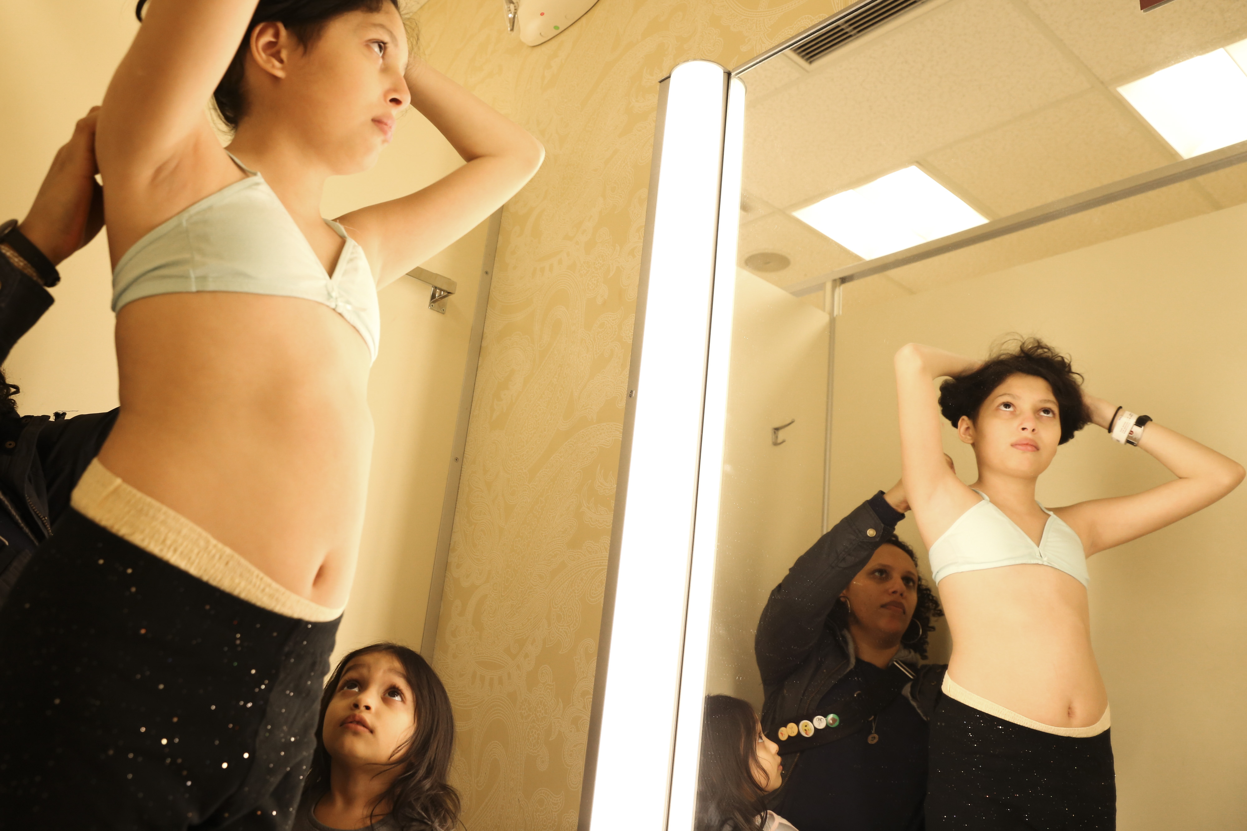 Lola begins experiencing tenderness in her chest, a sign of puberty. Melissa decides it is time for Lola to purchase her first bras, making sure she feels comfortable wearing them with the ways the medication has created changes in her appearance. March 8, 2017.