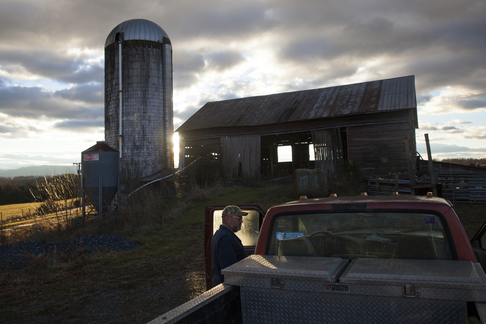 Larry Shiflett gets into his truck before leaving home for his family’s farm in New Hope, Va. on Christmas morning. “It’s just another day,” he said. “If you’re not willing to commit the 110 percent, then it’s not going to work. I guess farming has to be in your blood.”